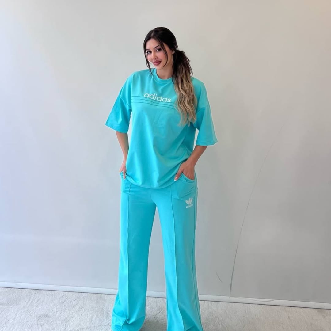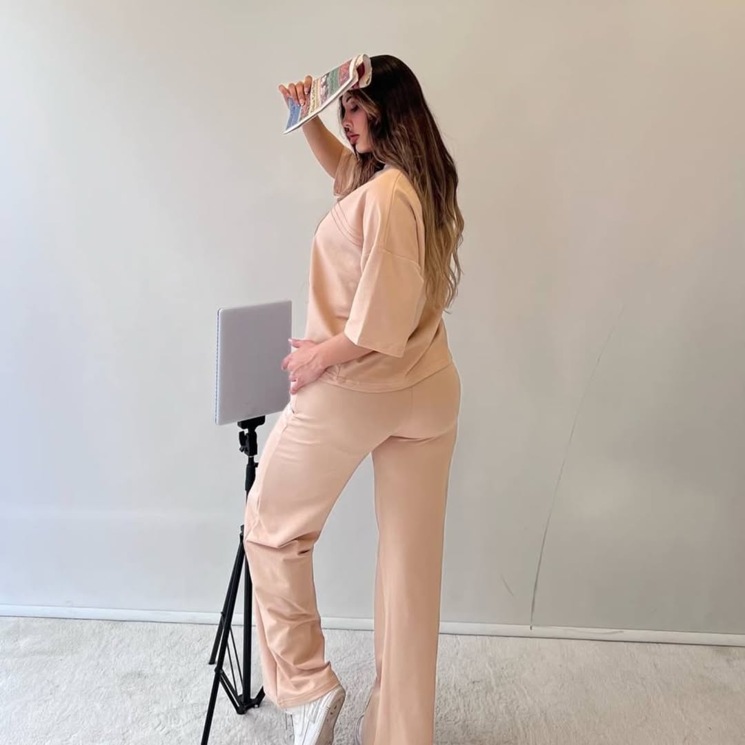 Questo set è composto da un top oversize dalla vestibilità ampia abbinato a pantaloni a gamba larga, per un'eleganza disinvolta e un carattere audace.
